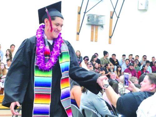 Senior advisers Dan Faurot-Daniels, Stephanie Jones and Brien Sparling led the presentation of diplomas, while principal Charlene McKowen and Aromas-San Juan Unified School District Superintendent Michele Huntoon took part in the acceptance of graduates.