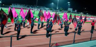 The Rancho Maze Band and Colorguard proudly showcase their talent and dedication during their first parade performance of the season at the 2025 Veterans...