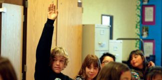 In one of two Thursday kindergarten classes at the Dual Language Academy, teacher Deanna Lane worked with students on the pronunciation of words – while displaying pictures of the objects – starting with the “sh” sound.