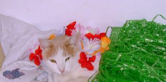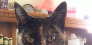 We got Figaro along with his brother 16 years ago. They were each about 6 ounces, furry, helpless creatures with closed eyes and unable to eat or crawl. A veterinarian’s office knew that I took in helpless kitties, bottle fed them, cared for them and let them develop until ready to adopt out and contacted me. Figaro and his brother thrived and were bonded to each other. We weren’t intending to keep them, but didn’t want to break up the pair. When Figaro was 4, his brother died and we kept him. He needed our comfort and his other cat friends. As he has aged, he has been content and mellow. Amazingly, he has pulled through two difficult health issues in the past two and a half years. He initiates play, likes catnip, cuddling and curling up in any box or basket. He has brought me extended comfort as I grieve the recent loss of my two dogs.