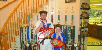 The increasingly famous martial arts father-son duo from Hollister – Nathan and Noah Fort – took their talents to the HP Pavilion last weekend and performed during an arena football game’s halftime show.