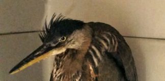 In June, a boating inspector named Patricia came across a young great blue heron in the middle of the road at Coyote Lake-Harvey Bear Ranch County Park in San Martin. The bird couldn't fly but was trying to hop across the road to get up an embankment. Concerned that it might get hit by a vehicle, Patricia brought the bird to the ranger station. Park ranger Seth Topping, who just happens to be a former WERC volunteer, contacted the Wildlife Education and Rehabilitation Center for advice on evaluating whether the bird needed to be rescued or should be returned to the lake. Because its attempts to strike and defend itself were slow and off the mark, Topping determined that it was probably too young or too malnourished to live if released. Patricia transported it to WERC.