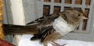 To paraphrase Hamlet, the young opossum literally suffered the slings and arrows of outrageous (mis)fortune. It was walking along the top of a fence just minding its own business, perhaps looking for an evening meal of fallen fruit or crunchy snails, when a person deliberately shot it down with an arrow. A neighbor saw the poor creature desperately struggling and notified the Wildlife Education and Rehabilitation Center. Staff at WERC found the arrow had pierced the top of the front leg and through the chest, narrowly missing vital organs, but leaving him extremely weak and causing severe nerve damage in the leg. X-rays showed the humerus bone was shattered. It was with very sad hearts that this little opossum was euthanized.