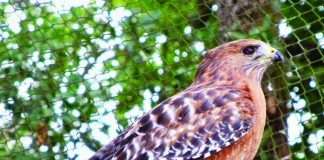 One of our local avian citizens has some wonderful people for whom to be thankful this year. At a field near downtown Morgan Hill last month, it's believed that this red-shouldered hawk was being attacked by a pair of much larger red-tailed hawks, who knocked the competing red-shoulder to the ground and badly bruised her wing. After being rescued and transported to the Wildlife Education and Rehabilitation Center, the hawk's exam showed that the right wing had painfully limited extension and the hawk could not stand well, but instead would totter over onto her side. A more visible and serious injury was feared – her left eye was covered by thick mucus surrounding the cornea. WERC staff cautiously cleansed the eye with warm water, which moved the tip of a foreign object into view. With tweezers, two foxtails were delicately removed from under the top eyelid and from the inner corner of the eye. Apparently, the hawk's desperate flailing on the weed-covered ground had allowed the offending foxtails to enter the eye, causing the secondary injury.