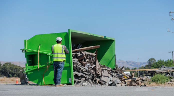 Truck pulling waste bin rolls over on Fairview Road