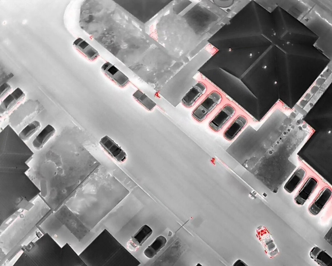 Officers set up a perimeter and deployed the police department’s drone to conduct a real time aerial search for the suspects, police said. Officers found the suspect by using the drone’s spotlight and infrared thermal capabilities to detect body heat.