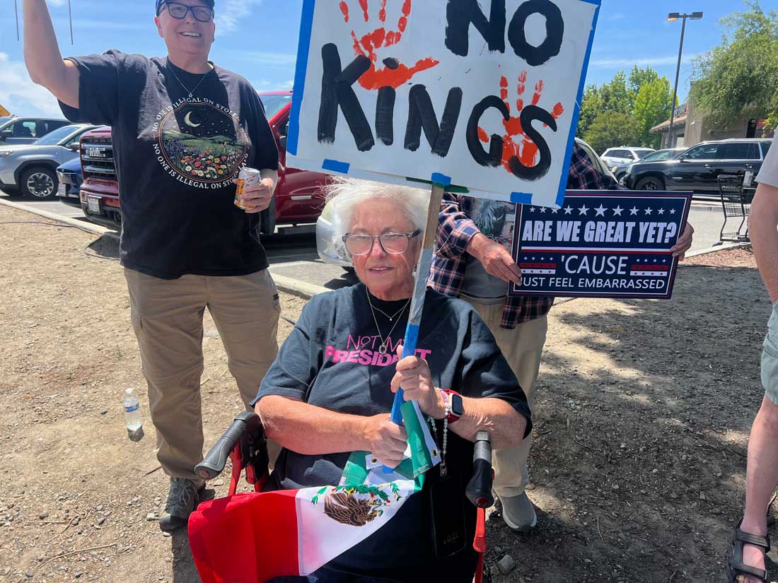Millions of people in cities and towns throughout the nation joined the “No Kings” protest on June 14—a crowd that included several hundred protesters in southeast Hollister.