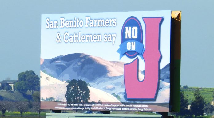 A No on Measure J sign remained displayed on a billboard along San Felipe Road early this week, while state law is supposed to require campaigns to remove the advertisements within 10 days of an election.