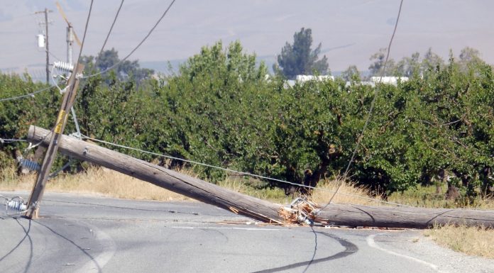 Traffic halted on a portion of Fairview Road on Tuesday morning when a pickup truck knocked down a utility pole.