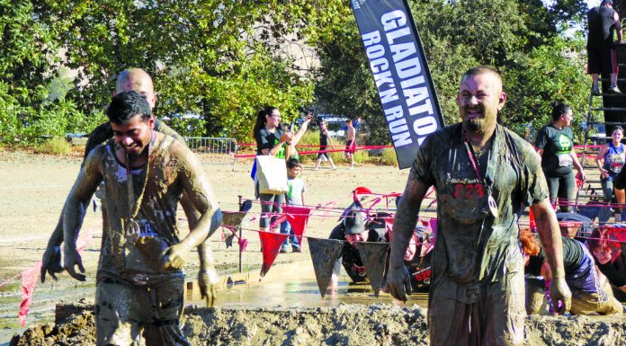 Hugging friends and family after they crossed the finish line, the competitors at last weekend’s Gladiator Rock ‘N’ Run at Casa de Fruta in Hollister did not let a little mud get in the way of having a good time.