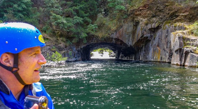 I was here last Saturday, and this place was packed.” Chris Reeves, our river pilot from Tributary Whitewater Tours, was amazed how quiet the Oxbow put-in location was by the edge of the Middle Fork of the American River. Chris is used to guiding busy weekend trips, but it was a beautiful Monday morning, and we practically had the river to ourselves.