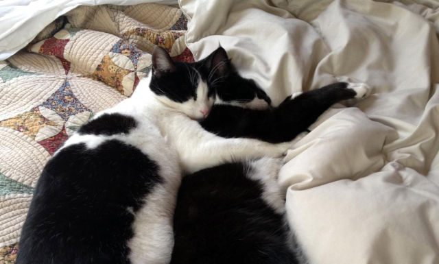 I went to a shelter to adopt a cat and walked out with two 9-week-old sisters. They stole my heart and I just couldn't split them up. They had been found one night in the middle of the street together, hungry and dehydrated when they were only 6 weeks old.