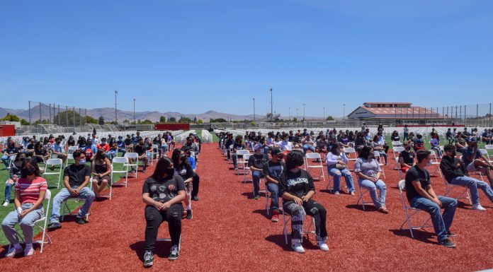 The San Benito High Class of 2021 participated in graduation practice on June 2 to get a...