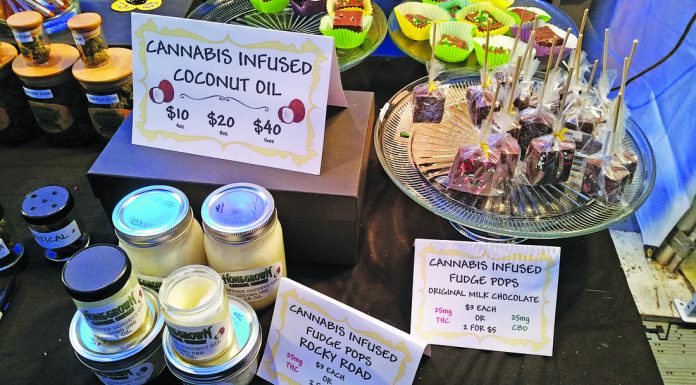 The tables were filled with cannabis-infused edibles, from granola chunks to dark chocolate bites. A nearby booth had flavored cannabis milk dished out in small plastic cups, the enthusiastic pitchman warning of the potency of the blackberry-scented drink. Then there were the topicals—thick lotions...